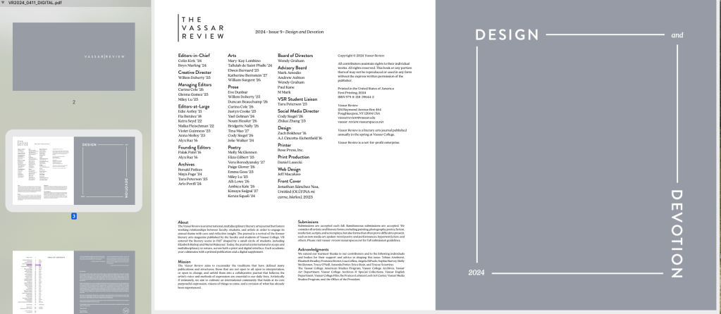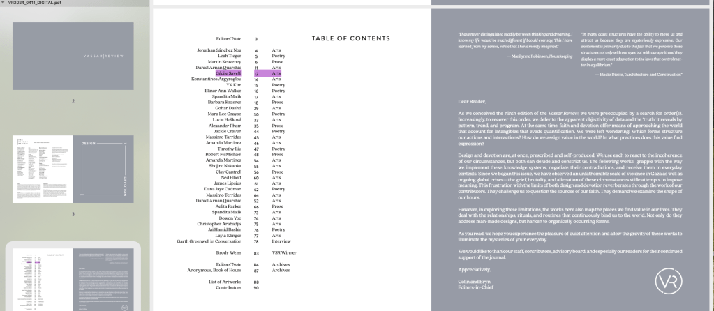 Impromptu 1 et 2, Vassar Review, 9, 2024
